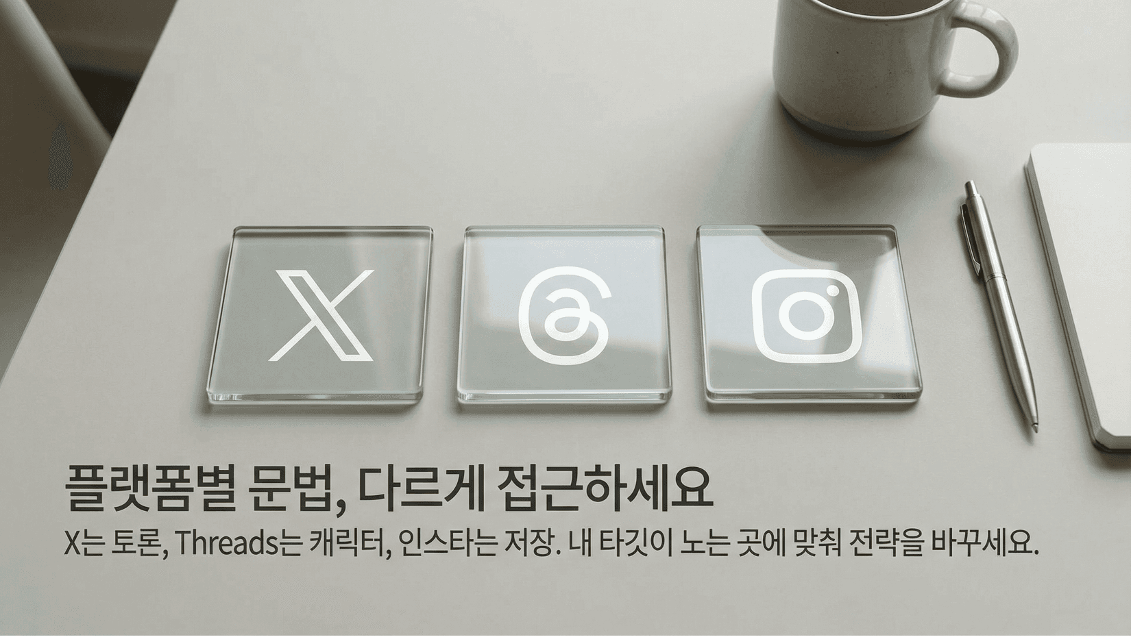 2) 플랫폼별 문법을 맞춰라. X는 답글 토론, Threads는 캐릭터, 인스타는 저장 설계.